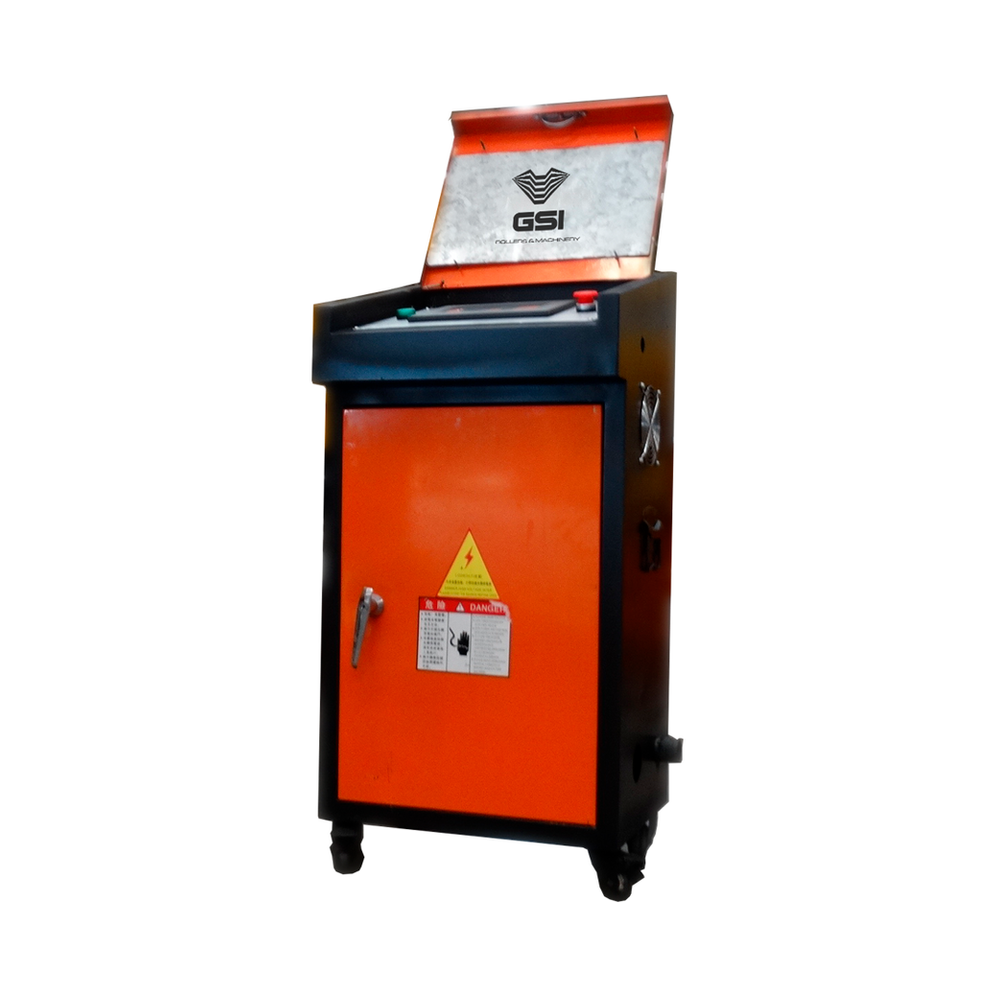 110V or 220V electric motor. - Quick-release CLAMP system. - Adjustment knob system for different sheet gauges. - Spring-loaded cushioning. - Dimensions: 58cm x 38cm x 37cm. - Weight: 35kg